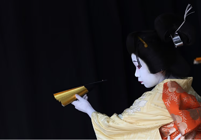 Egy általános iskolás kisfiú alakítja egy fiatal nő szerepét egy tokiói kabuki színházban, 2014 márciusában AP Photo/Eugene Hoshiko