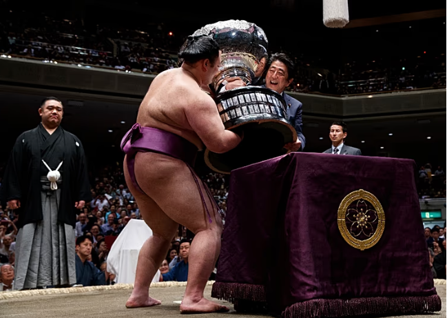 Még nem született döntés – ezt válaszolta a japán kabinet főtitkára arra az újságírói kérdésre, hogy a miniszterelnök tervez-e részt venni a szumó gálán, illetve a trófea átadásán.