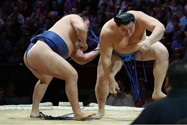 Egy szumó gála a londoni Royal Albert Hall megszentelt dohjójában, ringjében, 2025. október 19-én AP Photo/Frank Augstein